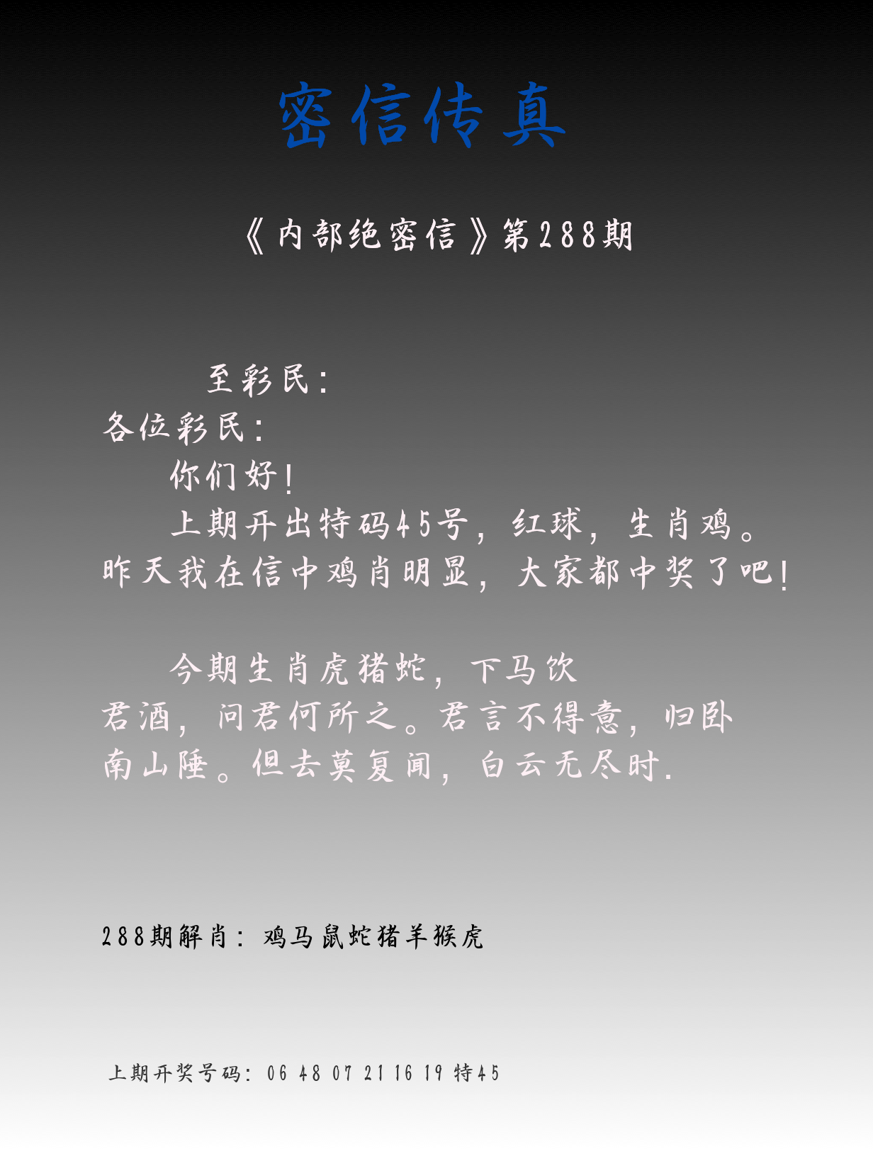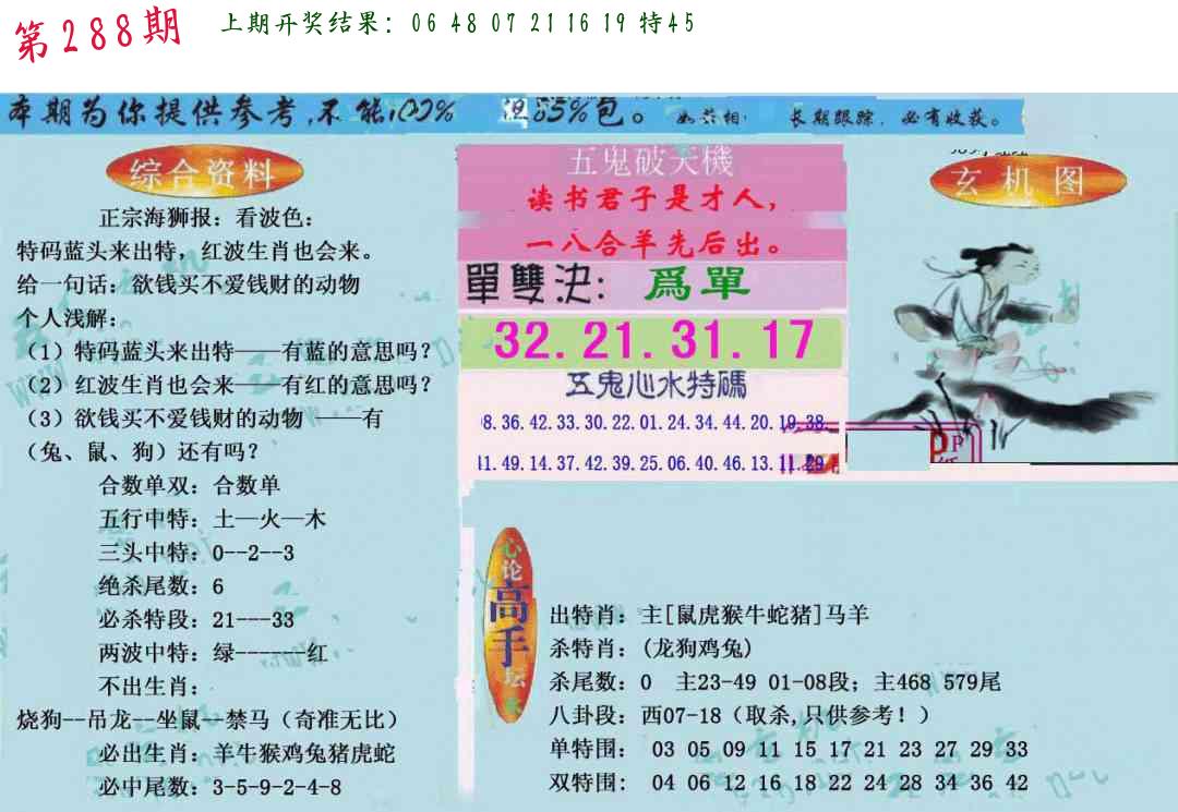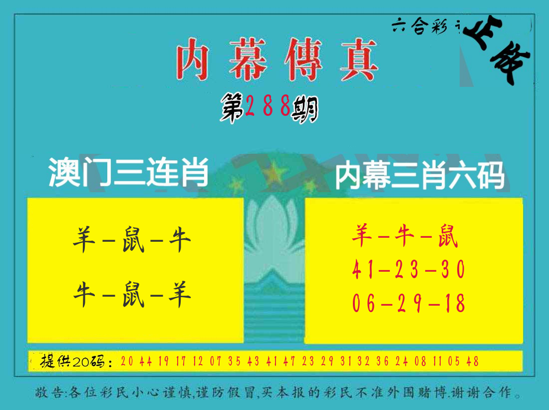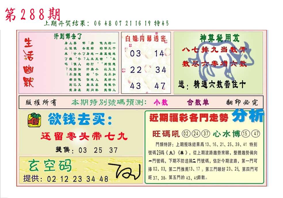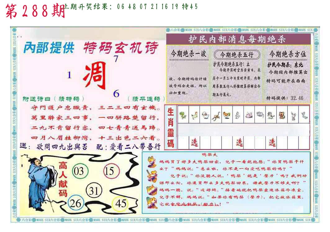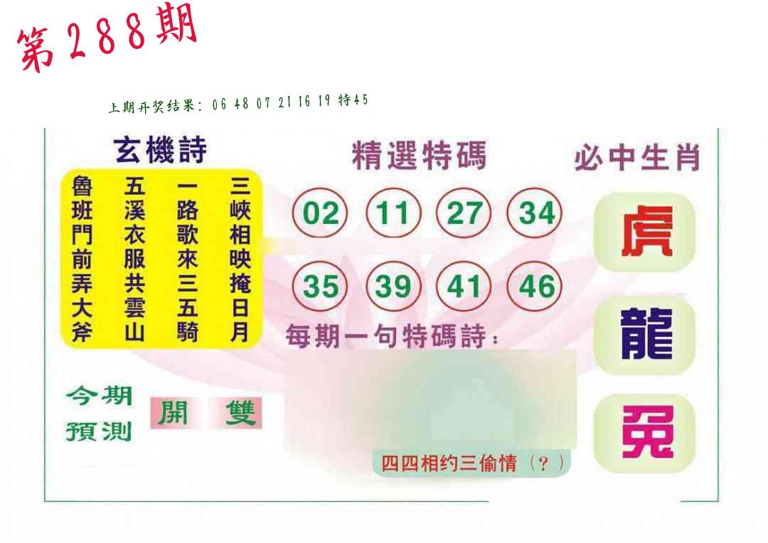 288期3肖防3码 (??????)
