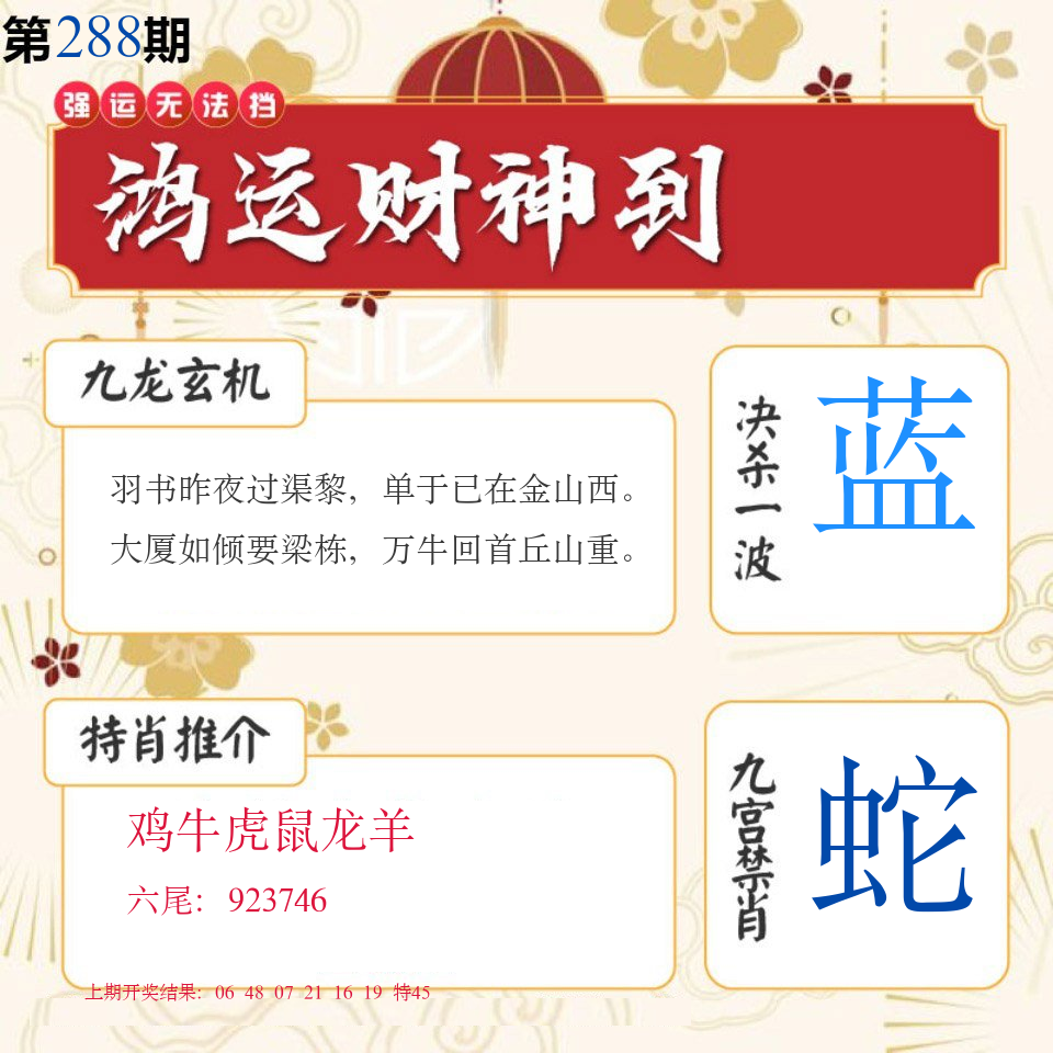 288期推荐五肖: 猪羊鸡龙蛇 ~~稳准狠 |