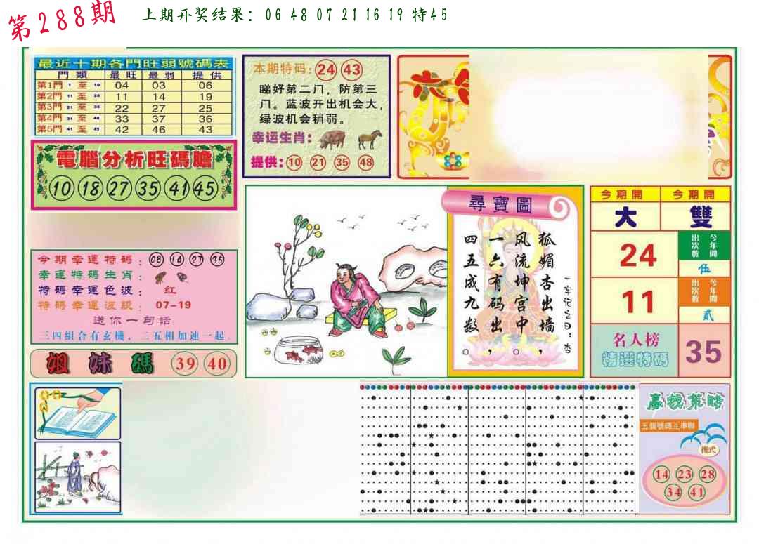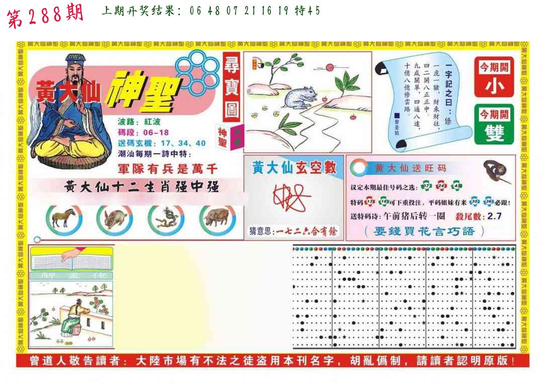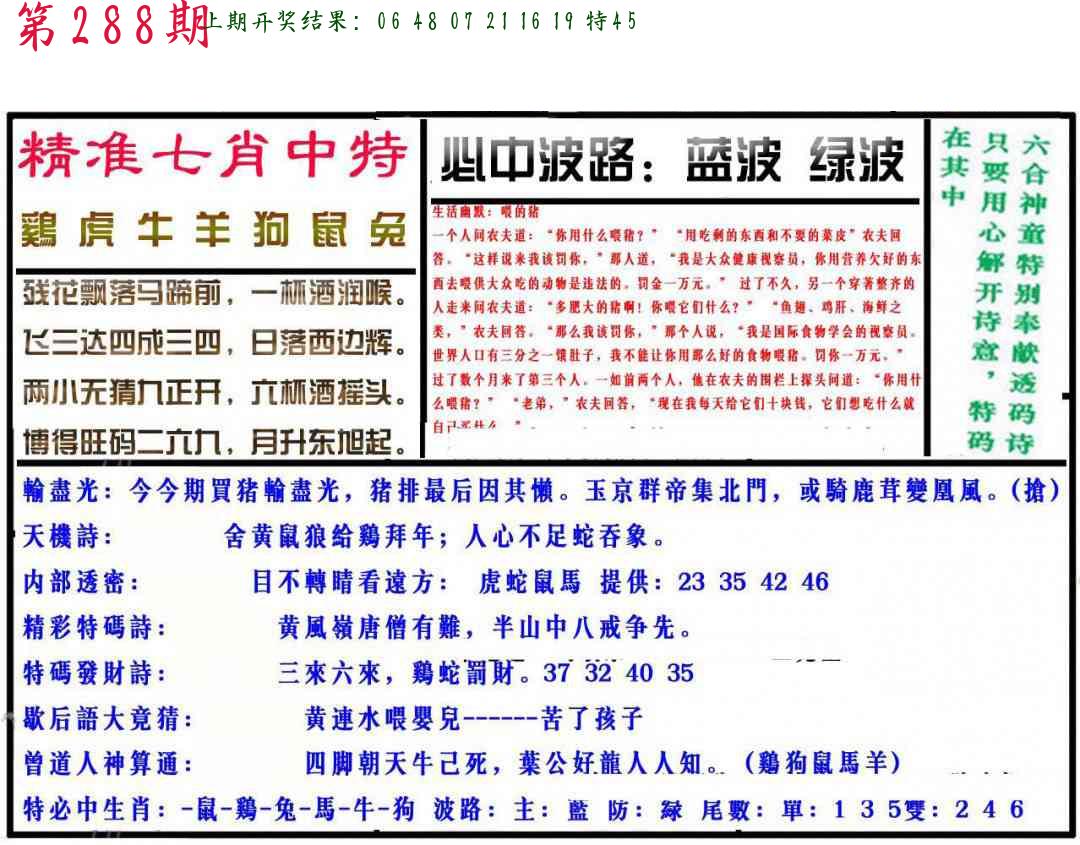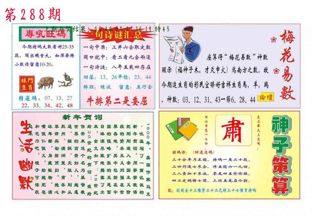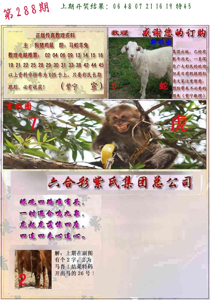 288期 家 【马牛羊】 野 【虎鼠猴】开 ??????? |