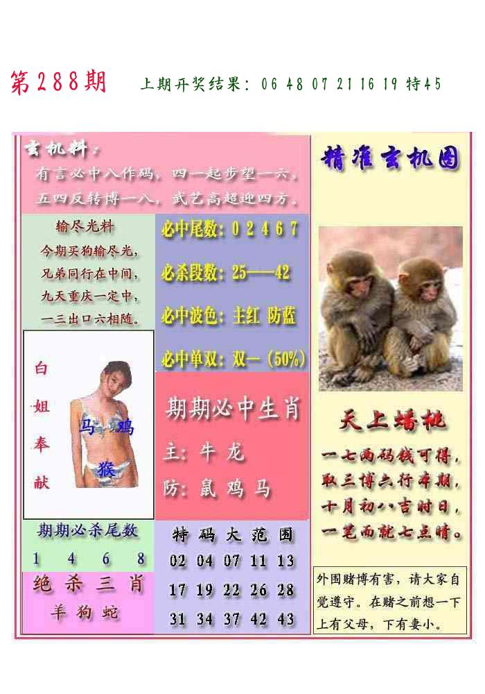288期家野(2)肖 【家禽+猴兔】 开 ??????? |