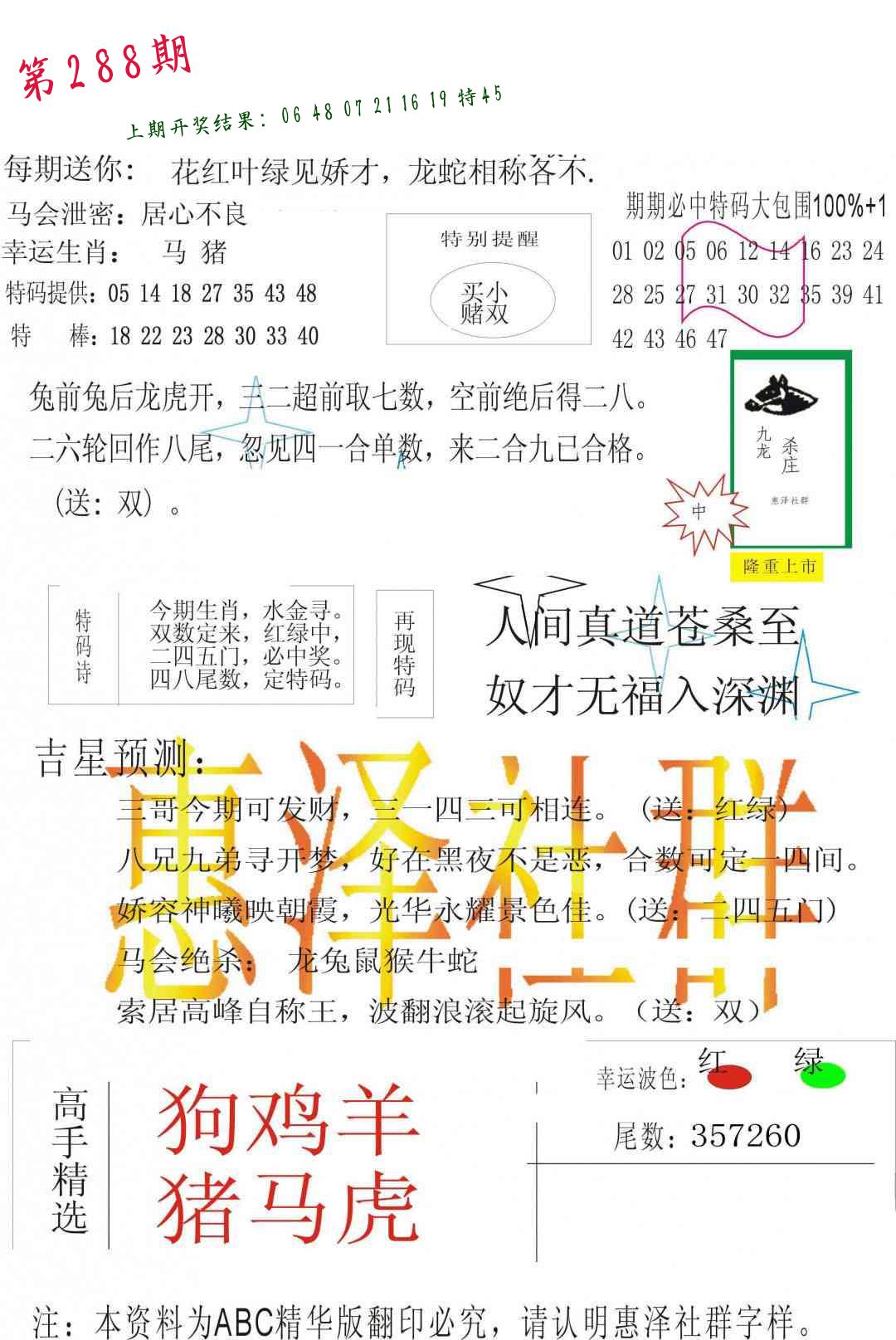 288期必中九肖 (??????)
