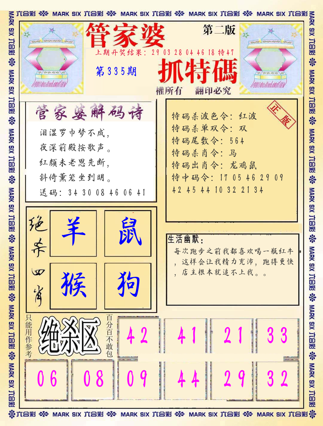 | 332期推荐五肖: 牛兔猴虎羊 ~~稳准狠 |