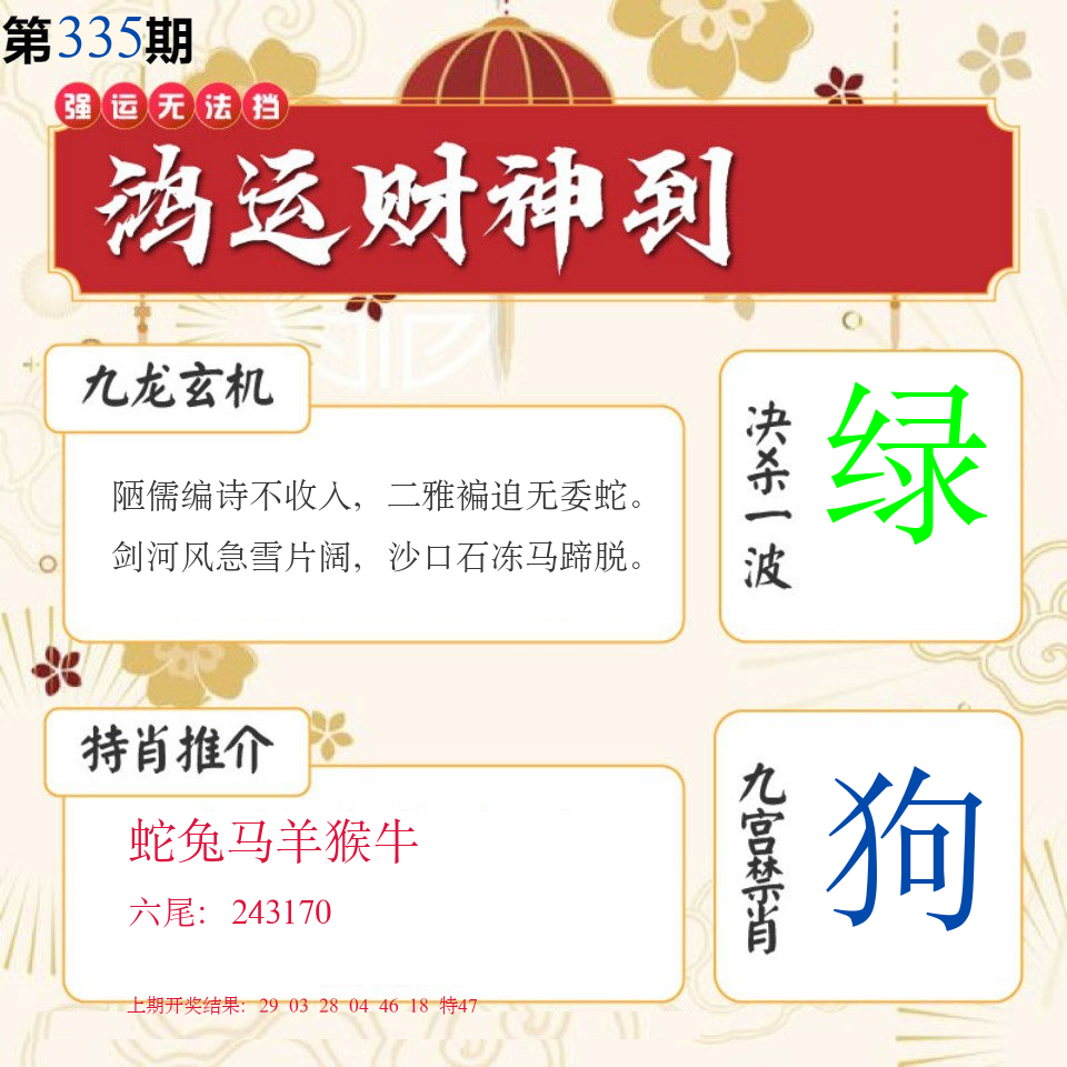 332期 家 【羊鸡狗】 野 【鼠猴蛇】开 14龙错 |