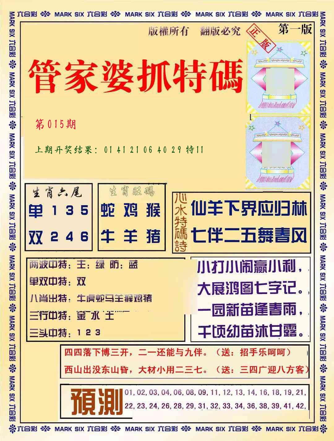 015期必中九肖 (??????)