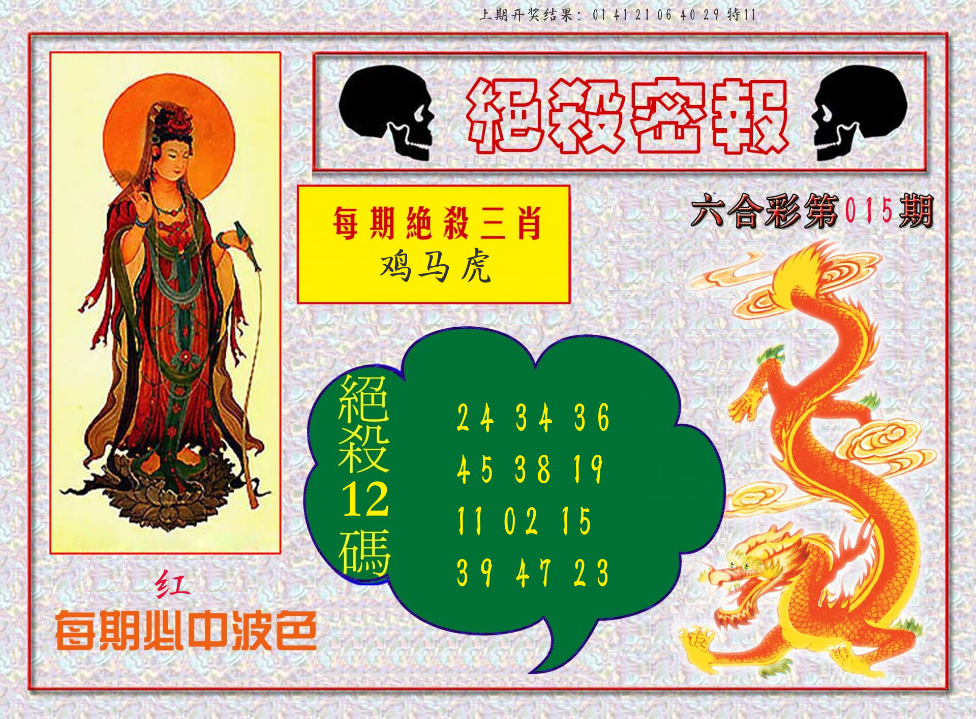 012期绝杀一波 【红波】 开 20狗对 |